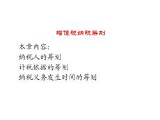 增值税纳税筹划本章内容:纳税人的筹划计税依据的筹划纳税义务发生时间的筹划学习目标:1、掌握增值税纳税人筹划的思路及方法2、掌握平衡点技术在纳税人身份选择中的应用3、掌握增值税计税依据的相关规定及筹划思