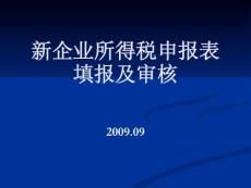 新企业所得税申报表填报及审核2009.09新企业所得税申报表设计的意义企业所得税申报表的功能及其填报的内容,具体反映和体现了企业所得税的相关法律规定和政策措施,每一项政策、每一项法律规定都会在纳税申报