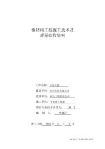 山东省建设工程质量监督总站监制钢结构工程施工技术及 质量验收资料 工程名称: 卓信大厦 建设单位: 卓信科技有限公司 监理单位:同力工程监理公司 施工单位:中华建工集团 项目专业技术负责人: 竣工日期