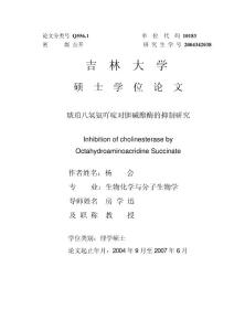 论文分类号Q556.1 琥珀八氢氨吖啶对胆碱酯酶的抑制研究Inhibition OctahydroaminoacridineSuccinate 作者姓名:杨 业:生物化学与分子生物学导师姓名 学位类别