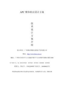 APC整体机房设计方案 设计单位:广州莱安智能化系统开发有限公司网站: 地址:广州市天河区中山大道建中路5 号天河软件园海天楼3A06 用户服务中心:Tel