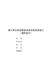 基于单片机的智能语音识别系统设计(硬件部分) 指导教师:基于单片机的智能语音识别系统设计(硬件部分) IntelligentSpeech Recognition System Based Single