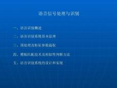 语音信号处理与识别语音信号处理与识别一、语音识别概述 一、语音识别概述二、语音识别系统基本原理 二、语音识别系统基本原理三、预处理及特征参数提取 三、预处理及特征参数提取四、模板匹配技术及相似性判断方