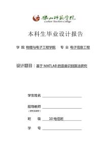 电子信息工程设计题目:基于MATLAB的语音识别算法研究学生姓名指导教师(姓名及职称)班 10电信班学 号乐山师范学院毕业设计报告完成日期:2014 月乐山师范学院毕业设计报告1题目:基于MATLAB