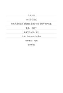 兰州大学硕士学位论文纳米氧化硅表面接枝超支化聚合物制备聚合物纳米囊姓名:申若平申请学位级别:硕士专业:高分子化学与物理指导教师:刘鹏20100501@蔺竹虫亭化学化工学院高分子化学与物理专业硕士学位论