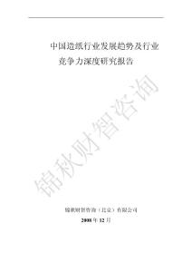 中国造纸行业发展趋势及行业竞争力深度研究报告锦秋财智咨询(北京)有限公司2008年12月TOC 第一章造纸行业概述 10第一节 行业定义 10一、 基本概念 10二、 工艺流程 10第二节 造纸行业的