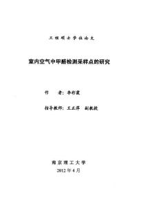 工程硕士学位论文室内空气中甲醛检测采样点的研究 作者:李彩霞 指导教师:王正萍副教授 南京理工大学 20 12年4月Master EngineeringDissertation Study Forma