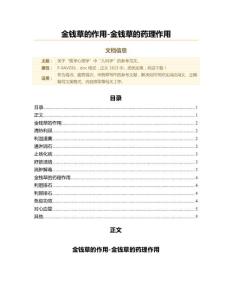 F-0AVZ65;这是一篇关于“医学心理学”中“儿科学”的中药师参考范文文档。正文共1,623字,word格式文档。内容摘要:金钱草的作用,清热利尿,利湿退黄,通淋消石,止咳化痰,舒筋活络,消肿解毒,金钱草的药理作用,利胆排石,利尿排石,免疫功效,对心血管,其他。