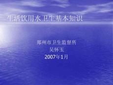 生活饮用水卫生基本知识郑州市卫生监督所吴怀玉2007年1月生活饮用水基本知识1.生活饮用水的类型2.基本概念3.生活饮用水的卫生管理4.近几年发生的水污染事件5.下一步工作打算一.生活饮用水的类型1.