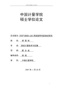 中国计量学院硕士学位论文1中国计量学院硕士学位论文论文题目:汽车气制动ABS系统部件性能测试研究姓 月20日中国计量学院硕士学位论文1独创性声明本人声明所呈交的学位论文是本人在导师指导下进行的研究工作