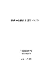 按病种收费技术规范(试行)中国卫生经济学会 中国价格协会 二〇一七年五月 使用说明一、《按病种收费技术规范(试行)》(以下简称《规范》),是在《全国医疗服务价格项目规范》(2012 年版)和国家卫生计