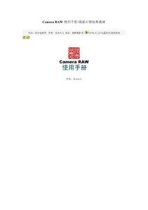 CameraRAW 使用手册-摄影后期处理教材 发布:照片处理网 作者:水木山人 来源:橡树摄影 73774人关注这篇内容 我要投稿 作者;水木山人 CameraRAW 使用手册-摄影后期处理教材 发