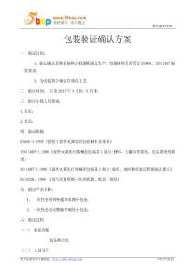 包装验证确认方案一、验证目的:1、验证确认新购包装热合机能够满足生产,包装材料是否符合EN868、ISO11607标准要求;2、为包装热合确定有效的工艺。二、验证时间:计划2013年3月初—3月末。三