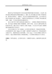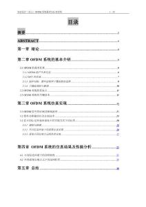 目录TOC 3318202223232830摘要本论文以OFDM系统为基础,介绍了OFDM系统的基本原理,以及使用OFDM技术的优势所在,并且展望了今后的无线移动技术的发展前景。在简单介绍OFDM原理