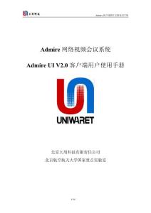 Admire客户端软件安装使用手册. Admire网络视频会议系统. Admire UI V2.0客户端用户使用手册. 北京大用科技有限责任公司. 北京航空航天大学国家重点实验室. 版本说明 ...