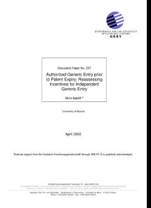 Authorized Generic Entry prior to Patent Expiry Reassessing…