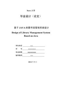 Xxxx大学 毕业设计(论文) 基于JAVA的图书馆管理系统设计 Design LibraryManagement System Based Java学生姓名 xxx xxxxxxxxx专业班级 xx