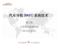 人人人人是是老老师师 人人人人是是学学生生钱兴晟江苏汽车技师学院2011年5月3日2• 第一部份:汽车电子技术发展简述• 第二部份:NAVI技术知识分享1.NAVI基本概述2.GPS导航相关原理3.电