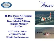 H.Don Davis, AF Program ManagerDave Schmidt, Military Program ManagerAv-Dec817-738-9161 Office417-88