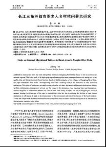 长江三角洲都市圈老人乡村休闲养老研究 study on seasonal migrationof