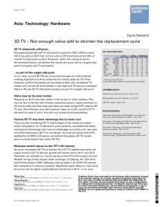 July27, 2011 Asia: Technology: Hardware Equity Research3D TV enoughvalue add replacementcycle 3D TV