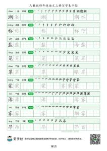 人教版四年级语文上册写字表字帖