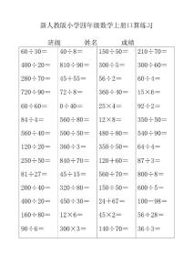 人教版小学四年级数学乘法竖式计算题和口算试题..