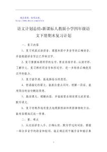 语文计划总结-新课标人教版小学四年级语文下册期..