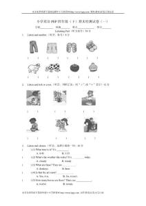 人教版小学四年级英语下册期中考试卷