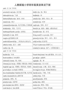 人教新版小学四年级英语单词下册