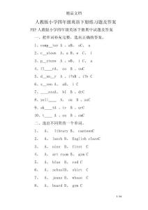 【精品文档】PEP人教版小学四年级下册英语期末..
