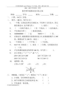 小学四年级上册数学综合测试试卷【人教版新课标..