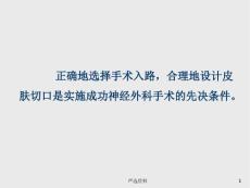 神经外科常见手术切口和入路正确地选择手术入路,合理地设计皮肤切口是实施成功神经外科手术的先决条件。手术入路的最优化原则在手术入路的选择过程中,应该把各种入路的特点和病变的大小、血供来源、周围结构受累情