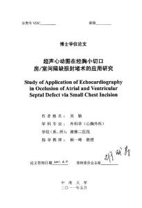 分类号VDC博士学位论文 密级 超声心动图在经胸小切口 房/室间隔缺损封堵术的应用研究 Study VentricularSeptal Defect via Small Chest Incision