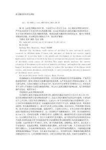 乳牙龋齿的危害及预防doi:10.3969/j.issn.1007-614x.2014.20.34 儿童乳牙龋齿比较严重,主要发生在5岁以下儿童,且大都没有得到及时治疗,严重危害着乳牙生长发育和牙齿的