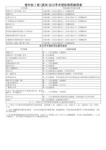 常见手术预防用抗菌药物表手术部位抗菌药物选择 原则预防用药时间头颈外科手术 第一代头孢菌素24h经口咽部粘膜切口的大手术 24h心脏手术 第一、二代头孢菌素(术前用药可使用万古霉素预防)72h神经外科