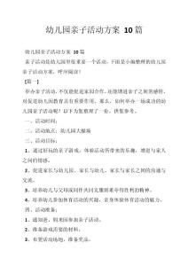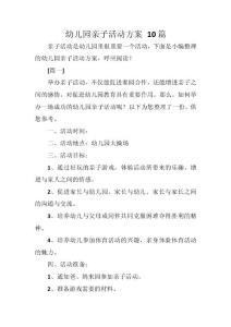 - 幼儿园亲子活动方案 10篇幼儿园亲子活动方案 10篇幼儿园亲子活动方案 10篇