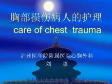 chesttrauma泸州医学院附属医院心胸外科刘 惠胸部损伤病人的护理 第一节概述 闭合性损伤:指受伤时未造成胸膜破裂,胸膜腔与外界不沟通,多由于暴力挤压、冲撞或钝器碰击胸部所至。轻者软组织损伤、单