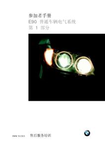 参加者手册E90 普通车辆电气系统 部分BMW 售后服务 售后服务培训 参加者手册中所包含的信息仅适用于 BMW 售后服务培训班的参加者。 有关技术数据方面的更改/补充情况请参见 BMW 售后服务的相