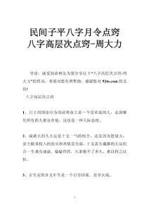 - 民间子平八字月令点窍 八字高层次点窍-周大力