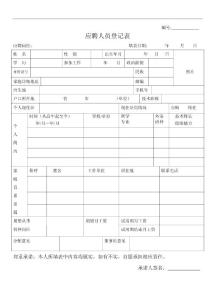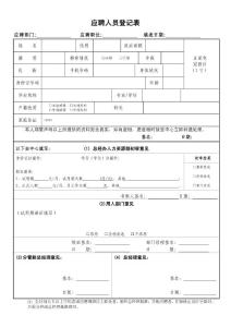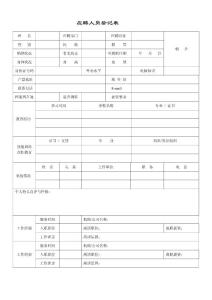 编号:应聘人员登记表 应聘岗位: 填表日期: 政治面貌身份证号 民族 照片 家庭详细地址 邮编 出生地 手机号 户口所在地 (单位)技术职称 个人现住址 现住址房情况 自购 租住 学校/单位所学 专业