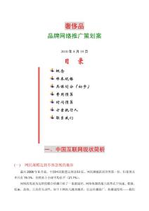 奢侈品品牌网络推广策划案 2010 概念样本规格 具体划分(初步) 费用预算 时间预算 方案执行人 联系我们 一、中国互联网现状简析 网民规模达到不容忽视的地步截至2008 月底,中国网民数量达到2.
