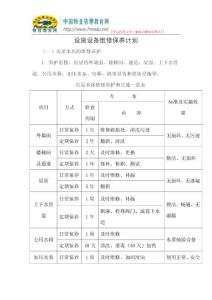『学习改变人生做成功物业管理人!』设施设备维修保养计划 (一)房屋本体的维修养护 1. 养护范围:房屋的外墙面、楼梯间、通道、屋面、上下水管道、公用水箱、加压水泵、电梯、机电设备和消防设施等。 房屋本