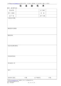 单编号:QR/QXP-002设备名称 出厂编号 型号(规格) 生产厂家进厂日期 主要技术参数:随机附件及数量:随机资料:设备安装调试情况:设备验收结论:参加验收人员备注:使用部门签名: 日期: 生产部