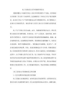 化工设备论文安全检修管理论文【摘要】化工设备作为化工企业非常重要的生产设备,对其做好安全检修工作具有十分必要性,这是确保化工企业安全生产的关键所在,而且对于化工生产效率的提高也具有积极的作用,对于降低