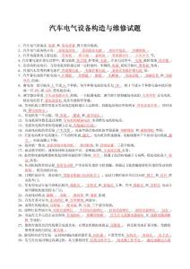 1、汽车电气设备由电源 用电设备两大部分组成; 2、汽车电气设备特点有: 采用直流电 3、汽车电源系统主要包括:发电机 4、汽车蓄电池在放电过程中,蓄电池的化学能 转变成 电能 ,在充电过程中, 电能
