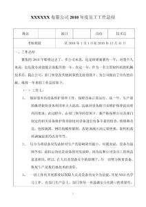 XXXXXX有限公司2010 年度员工工作总结 姓名 部门 岗位 技术员 考核期限 从2010 日至2010年12 月31 一、工作总结紧张的2010 年即将过去了。多公司来说,这是硕果累累的一年,对