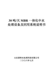 30吨/天MBR一体化中水处理设备及回用系统说明书山东恩特水处理科技有限公司二六年七月承诺函一、工程质量承诺1、质量达到淄博市环保局和淄博市相关部门优良工程的标准。2、如果处理不达标,我们愿意承担业主
