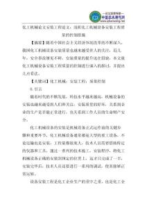 化工机械论文安装工程论文:浅析化工机械设备安装工程质量的控制措施【摘要】随着中国社会主义经济体制改革的不断深入,我国化工机械设备安装质量也越来越受世人的关注,近几年,安全事故屡见不鲜,安装质量的提升迫