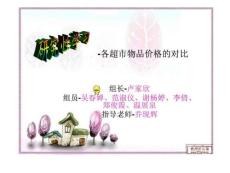 -各超市物品价格的对比组长-卢家欣组员-吴春婵、范淑仪、谢杨婷、李倩、郑俊霞、温展泉指导老师-乔现辉•目前全面物价指数偏高,大部分居民收入与物价不成正比,影响老百姓的生活,从而引发了社会问题。由于市场